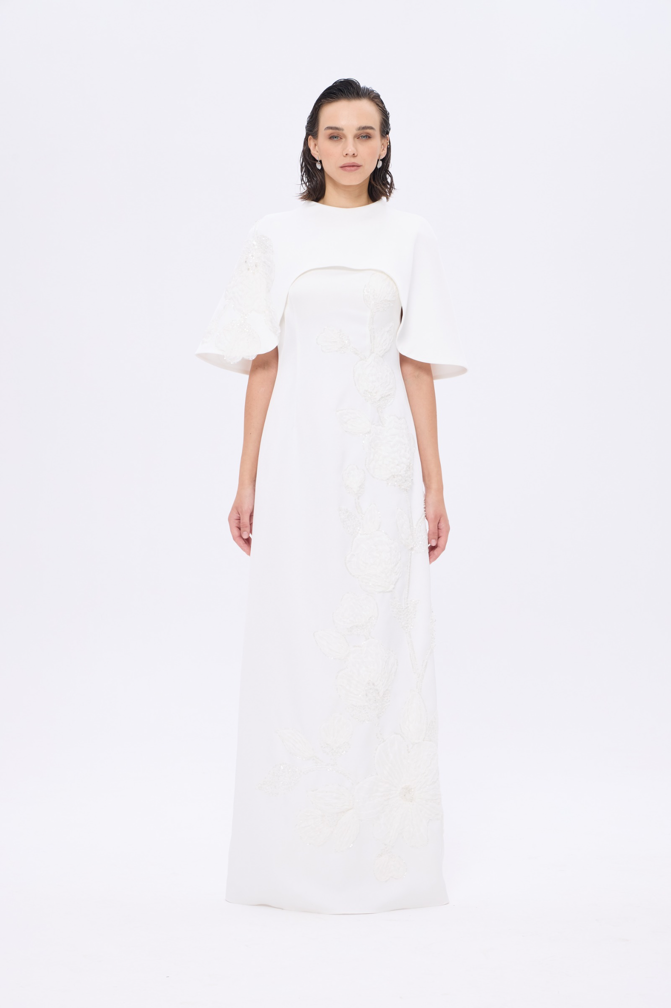 𝐑𝐎𝐒𝐀𝐋 Dantel İşlemeli Uzun Krep Abiye Elbise